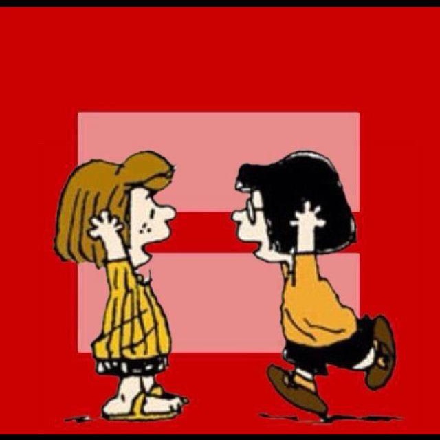 After much internal deliberation, I changed my Facebook profile picture this week, going with the Peanuts version of the red HRC equal sign (gotta love Peppermint Patty, Sir).