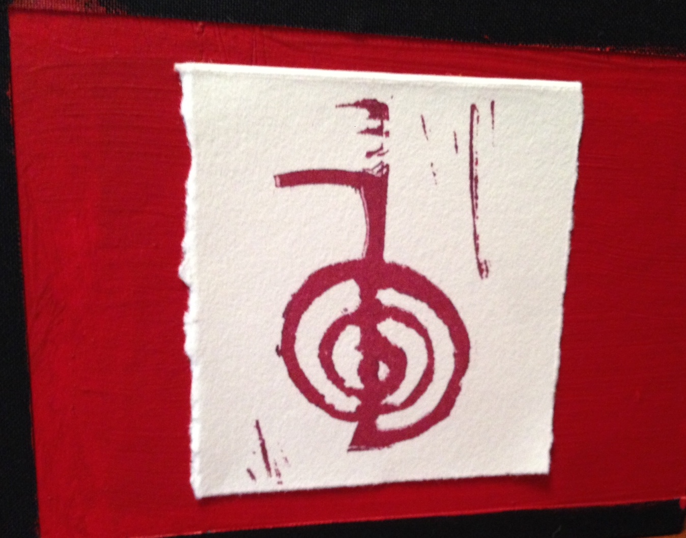The book cover is from a photo I took of a book I made for a friend. I carved the stamp that I used for the design. It is the symbol for Choku Rei, which means healing and energy and power and is used to clear the space in healing sessions. Given all of the healing energy that I have received as being a member of the Haiku Room and writing and reading haikus, I can’t imagine a more appropriate book cover.