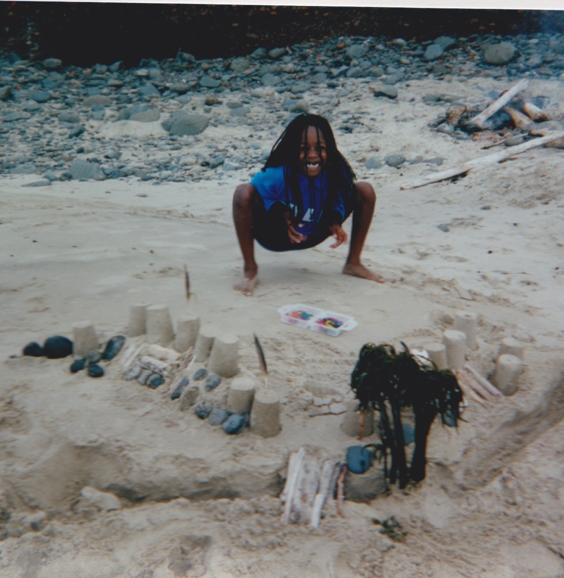 That’s it–just imagination. No need to be overwhelmed or caught up in the details. Find some kelp to turn into palm trees. Make the sticks talk to the leaves. Just put my stick in the fire and write in the sky.