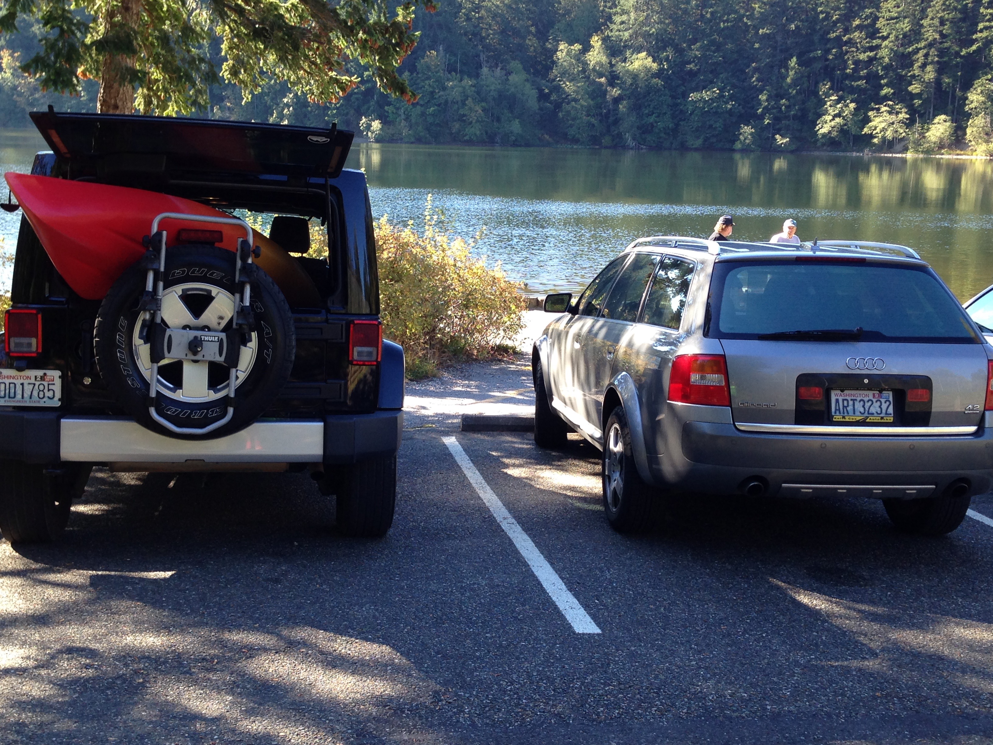 I shooed the cat out the door and hurried to get dressed. Then I loaded the kayak in the back of my truck (so much easier than heaving it up onto the fancy and expensive Thule rack I own) and headed out to Sudden Valley to be the support boat for my friend’s great swim.